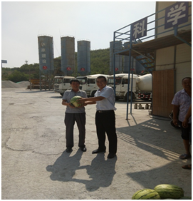 入伏以來,我省各地驕陽似火,氣溫節(jié)節(jié)高升,直逼40度。7月25日上午,陜西省華源建筑工程有限責任公司工程部周部長一行深入公司所屬海林御苑項目部、華原西道項目部以及塑鋼窗廠、攪拌站等項目部、廠、站,代表公司慰問奮戰(zhàn)在高溫環(huán)境下的一線人員,為他們送去西瓜和公司的濃濃關愛,送去一抹綠蔭,送去一絲清涼。